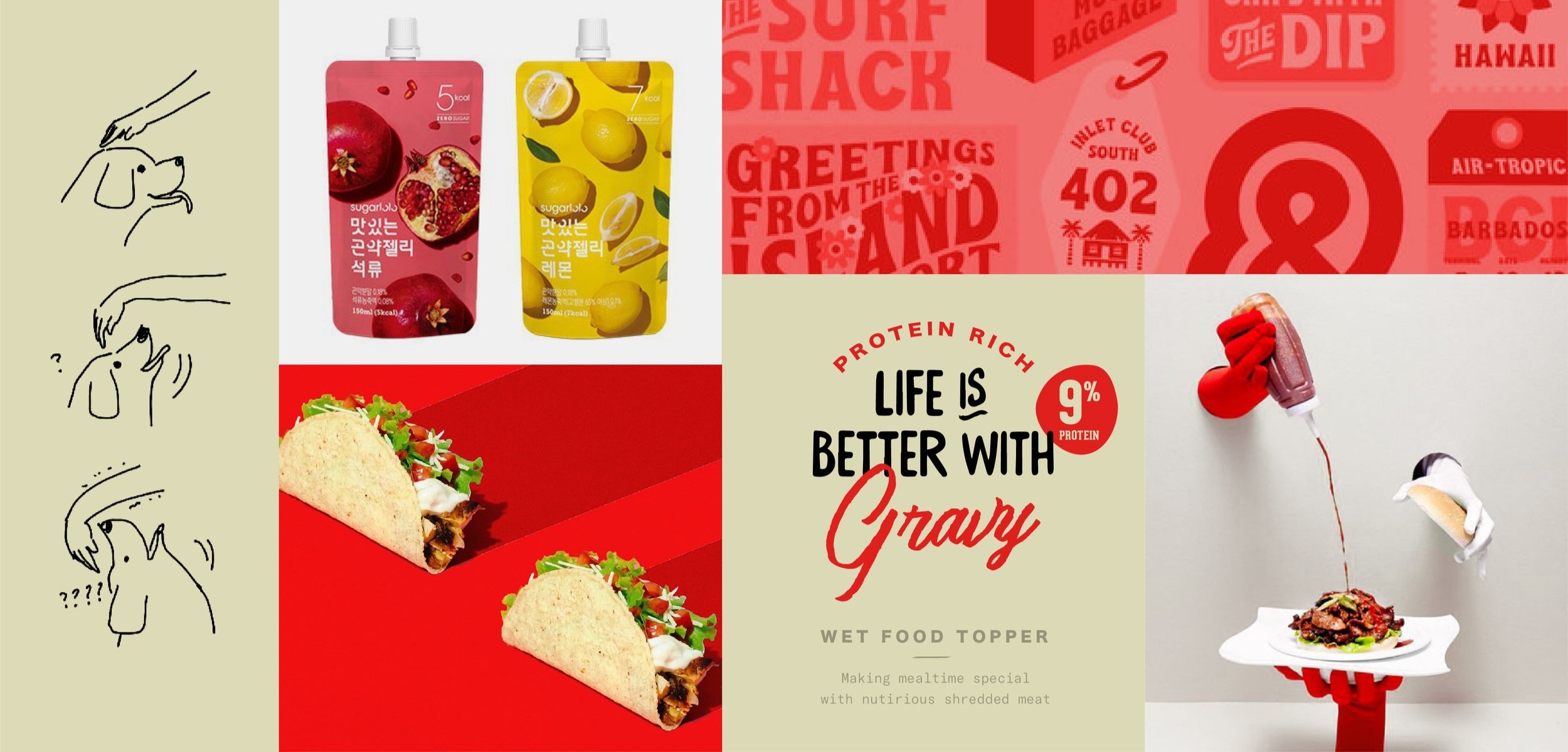 Stella’s Shredrs were driven by photography, the selling point was the real shredded meat in the product. We wanted to highlight it as much as possible and not in the standard half a bowl at the bottom of the pouch way. We decided to take an editorial angle and treat all the elements as on the same plane, having the shadow of the bowl interact in a playful way with the other type elements. In addition the bowl served as a way of helping us distinguish recipe, it would change color along with the type to help distinguish the different varieties of product.